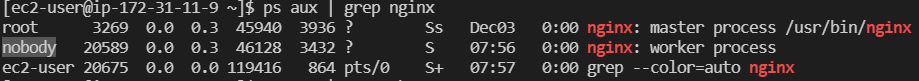 nginx의 worker process user가 nobody인데 반해