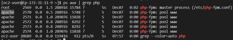 그 결과 amazon linux(centOS 기반)의 경우 '/run/php-fpm/www.sock' 로 socket 파일이 만들어짐을 알 수 있었다.