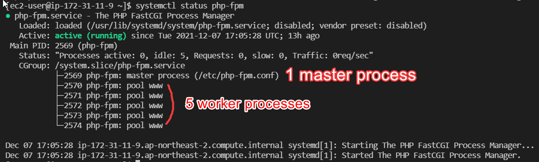4. php-fpm이 잘 작동하는 지 확인