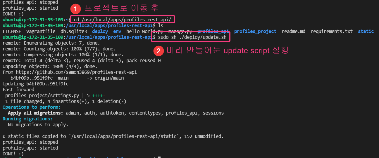 (6) git push 후 update script 실행하기
