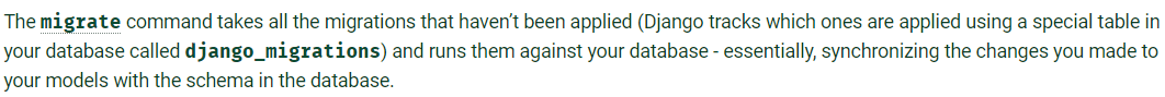 1. Migrate를 하면 DB는 스키마를 변경할 뿐 아니라 지금까지 적용된 Migration layer 에 대한 정보를 'django_migrations' TABLE에 저장한다.